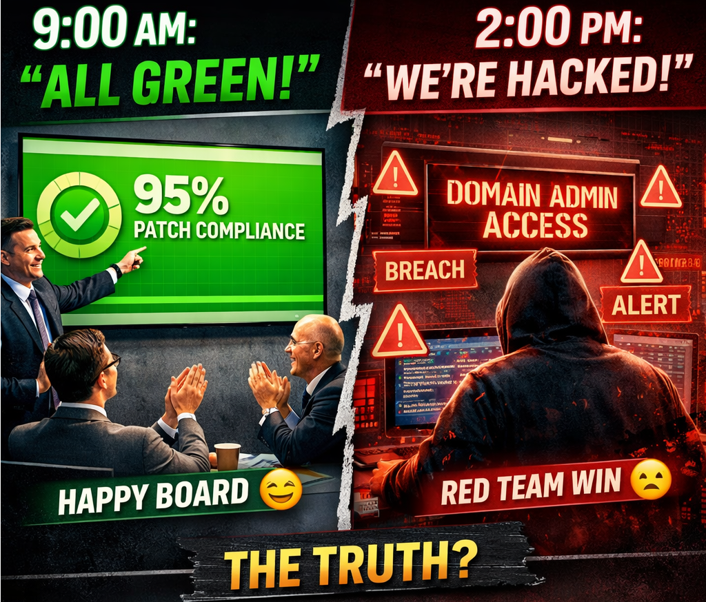 ## The Monday Morning Illusion It's 9:00 AM on Monday. The CISO walks into the board meeting with a dashboard showing **95% patch compliance**. The vulnerability management platform displays reassuring green checkmarks. The monthly report shows the security team closed 2,847 findings last quarter. The board nods approvingly. By 2:00 PM that same day, the Red Team has gained domain admin access. **What happened?** The dashboard wasn't lying—it just wasn't measuring what mattered. The organization had confused **compliance** (did we run the scanner?) with **security** (did we reduce actual risk?). This is the silent failure of Vulnerability Management. And it's happening at enterprises across every industry, every day. After all these years managing AppSec programs across Finance, telco, and Oil & Gas, I've learned that **vulnerability management fails not because we can't find vulnerabilities—we're drowning in them. It fails because we can't separate signal from noise.** Here's why VM is broken, and what we need to fix.
